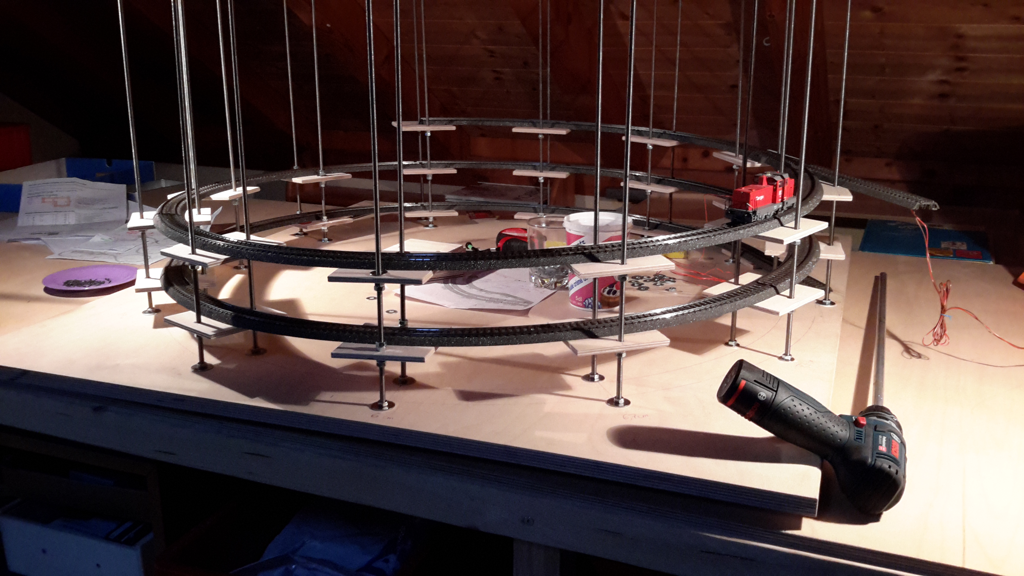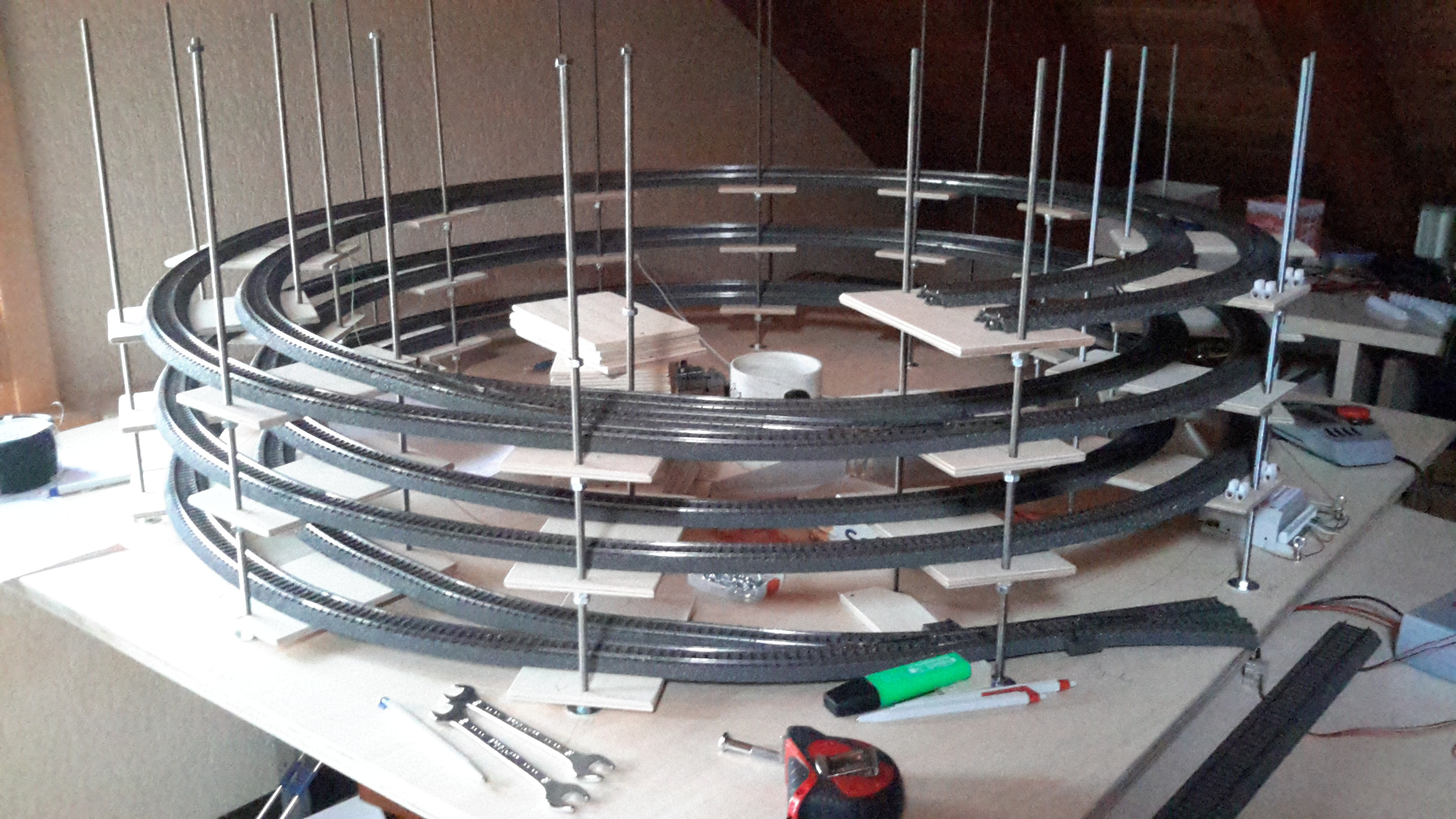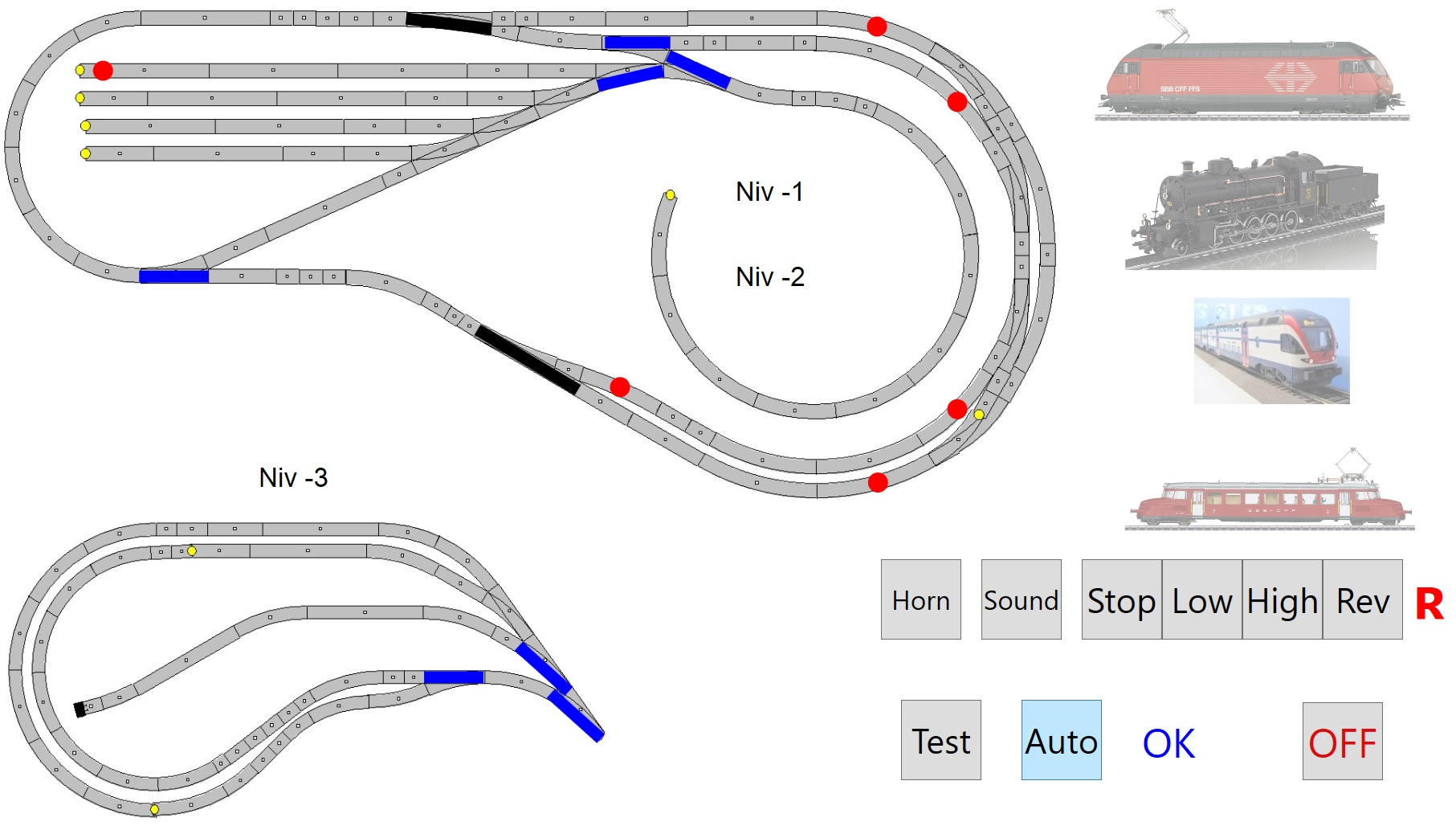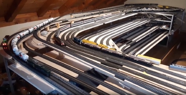 - Maquette 2017 avec 5 trains sur 3 m2 :
